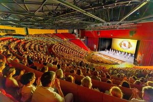 2026年4月6日晚,神韻世界藝術團在法國里昂國際城圓形劇場(L'Amphithéâtre 3000)首場演出爆滿。(傅潔/大紀元)